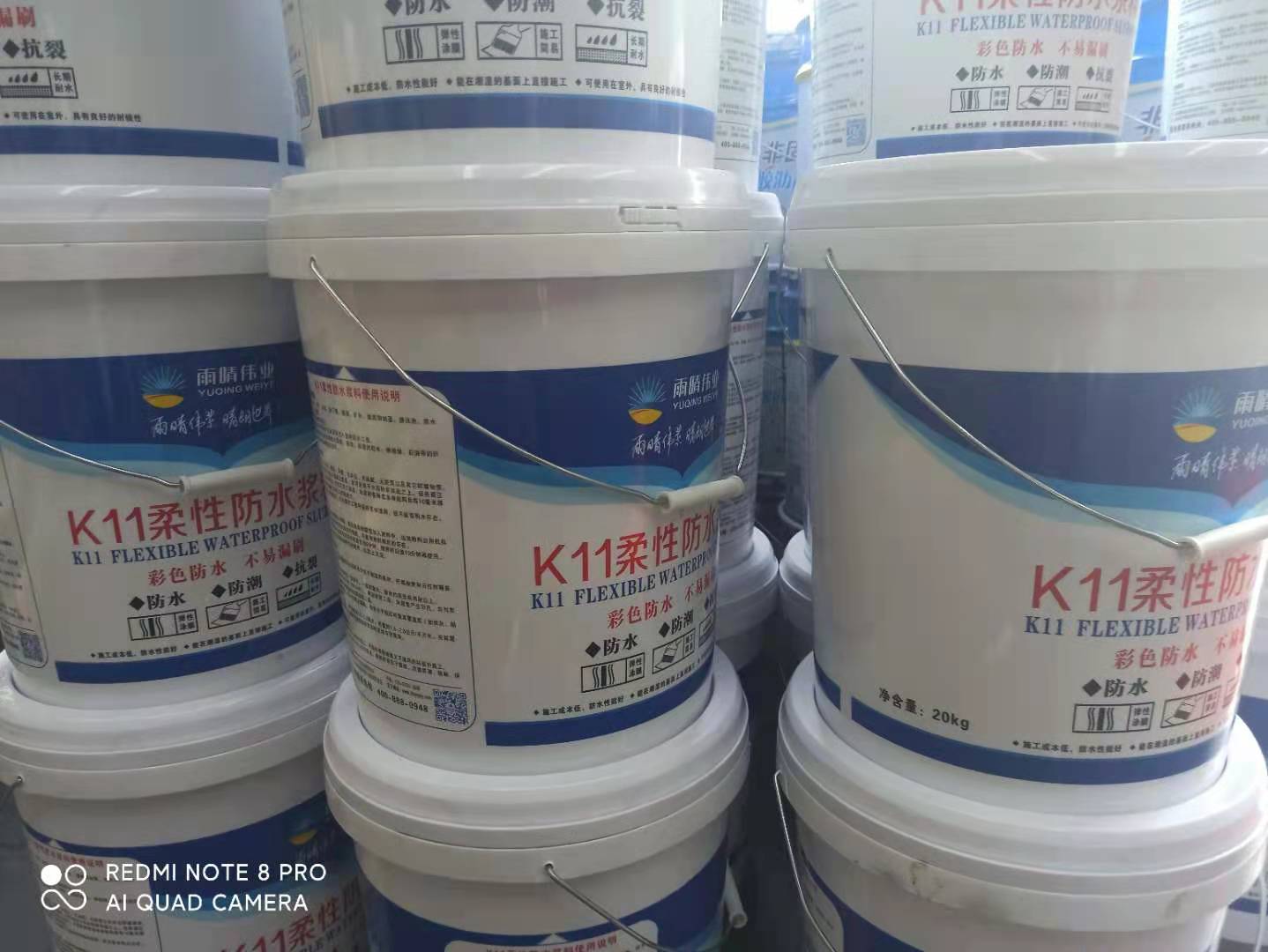 K11彩色柔性防水涂料是一种双组分聚合物改性水泥防水材料。浆料由高聚物添加各种助剂化合而成,具有高粘结力、柔韧性,以及防霉、耐磨性能;粉料由优质水泥、石英砂及独特的活性物质组成,遇水之后,发生化学反应,渗进结构体内部,并形成结晶体,不仅阻遏各方向的水通过,而且加固了结构体,昌都其寿命。